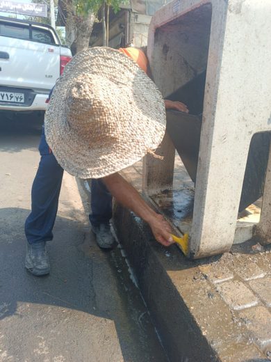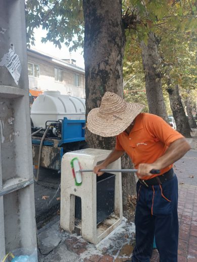 شستشو و گندزدایی سطلهای زباله ثابت مسیر میدان دیلمان تا میدان امام حسین