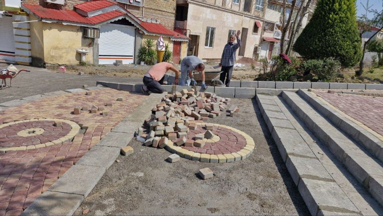ادامه روند سنگفرش ورودی استخر پاشوران توسط شهرداری سیاهکل